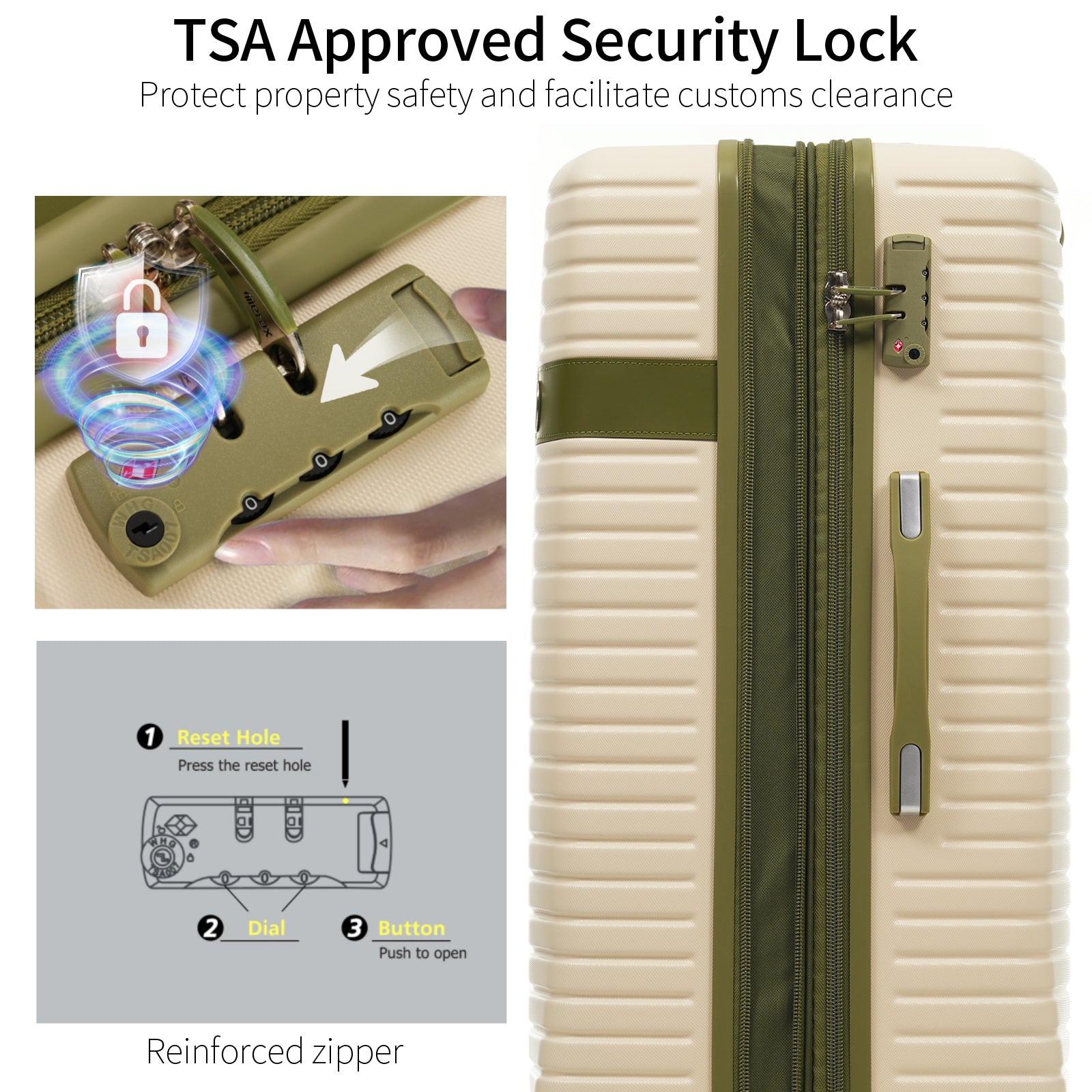 - Upgraded size 10 zipper chain teeth are wider and the bite is tight. Pulls smoothly and effectively prevents chain heads from falling off and zippers from tearing. Paired with a 3-dial TSA lock, it provides security and convenience for travel.anti-aging feature of built in UV-radiation protection for long lasting usage for years to come.
